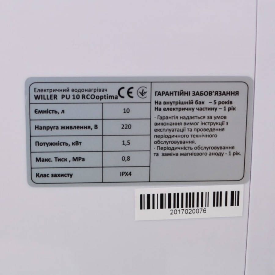 Керівництво по експлуатації водонагрівача Willer Optima mini.