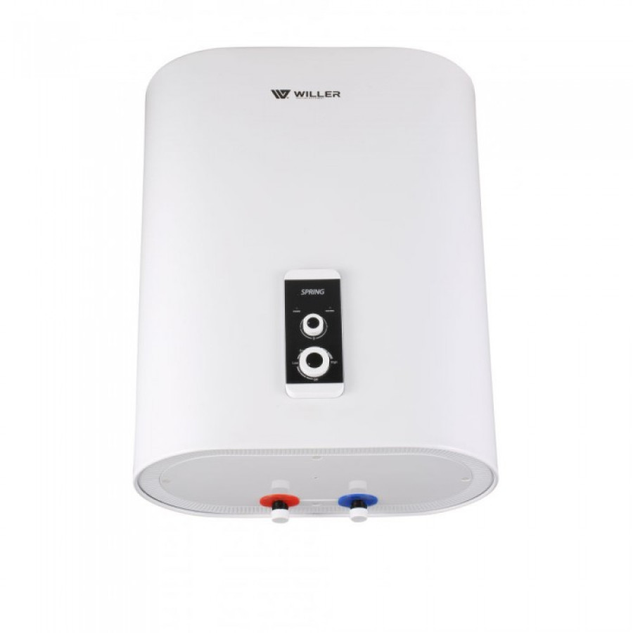 Універсальний дуже тонкий міні електричний бойлер Willer EVH80R Spring - нагрівач води накопичувального типу ємністю 80 л. Можлива установка в двох положеннях: горизонтально або вертикально, залежно від наявного простору в приміщенні і особливостей інтер'єру.