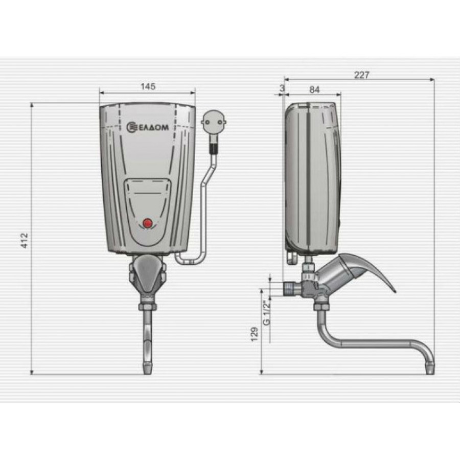 Водонагрівач проточний "Eldom" 5000 кВт з краном