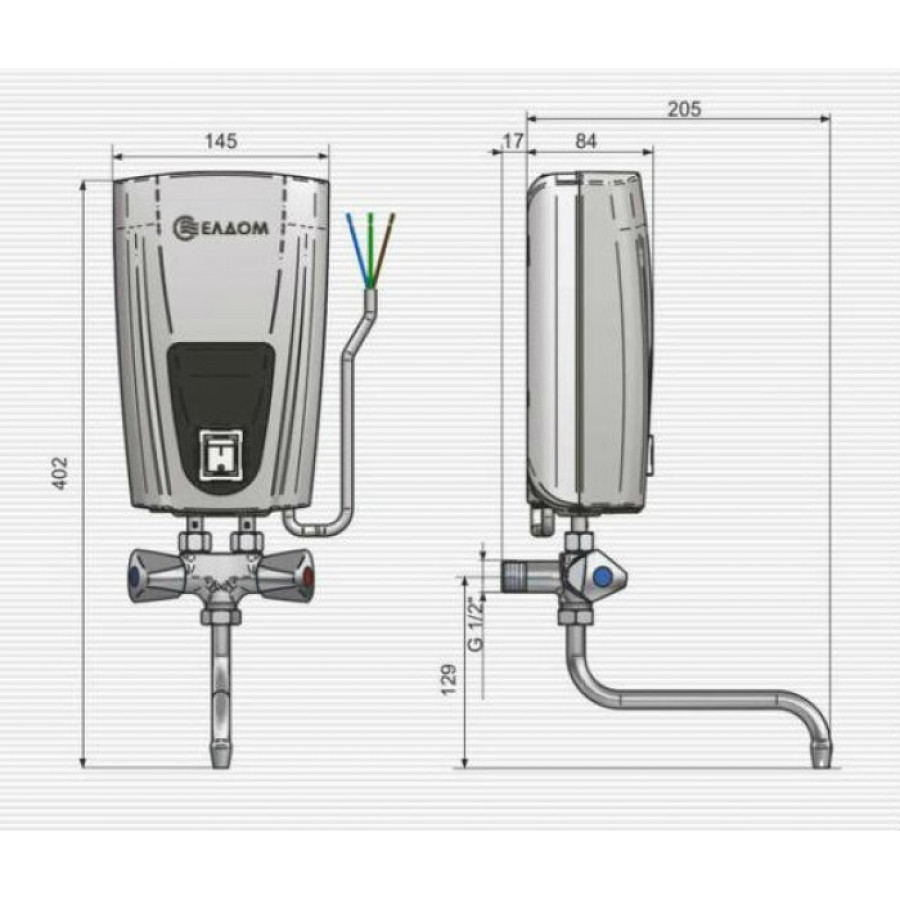Водонагрівач проточний "Eldom" 6,5 кВт зі змішувачем