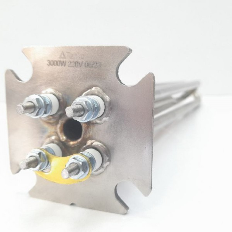 - Два ТЕНи × 1,0 кВт змонтовані на квадратному фланці під 4 болти для кріплення на обладнанні.
