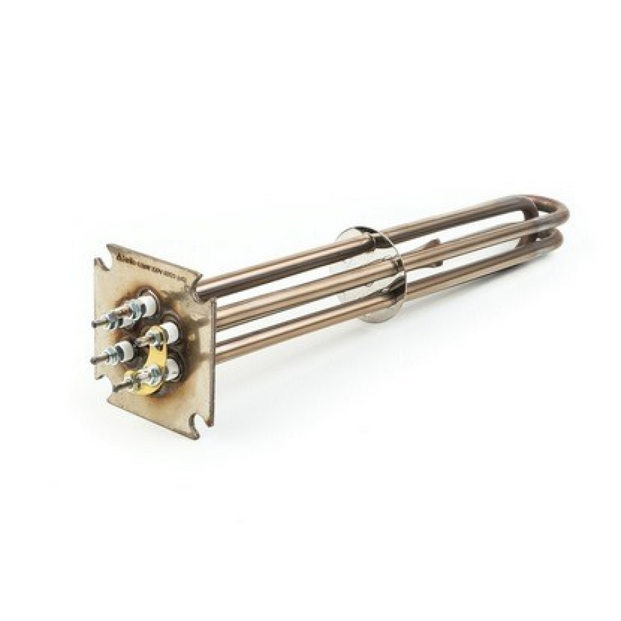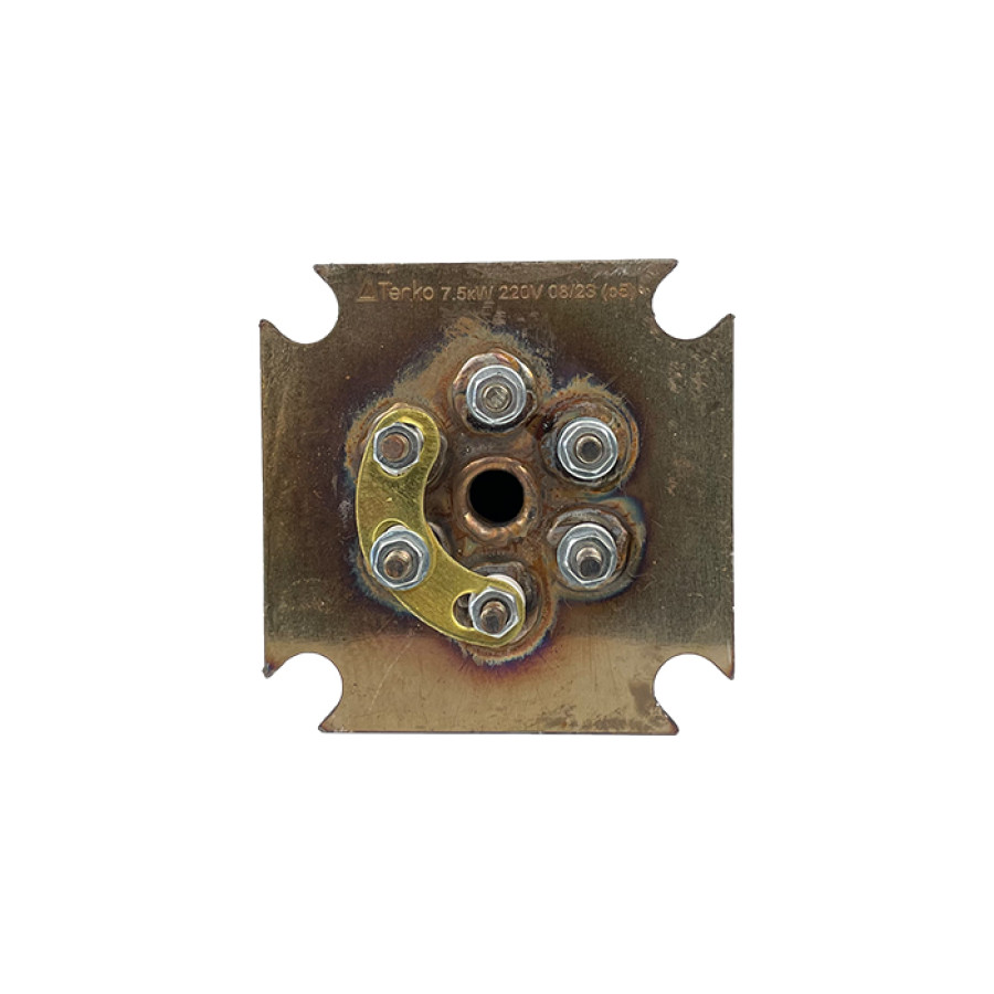 - Три ТЕНи × 1,5 кВт змонтовані на квадратному фланці під 4 болти для кріплення на обладнанні.
